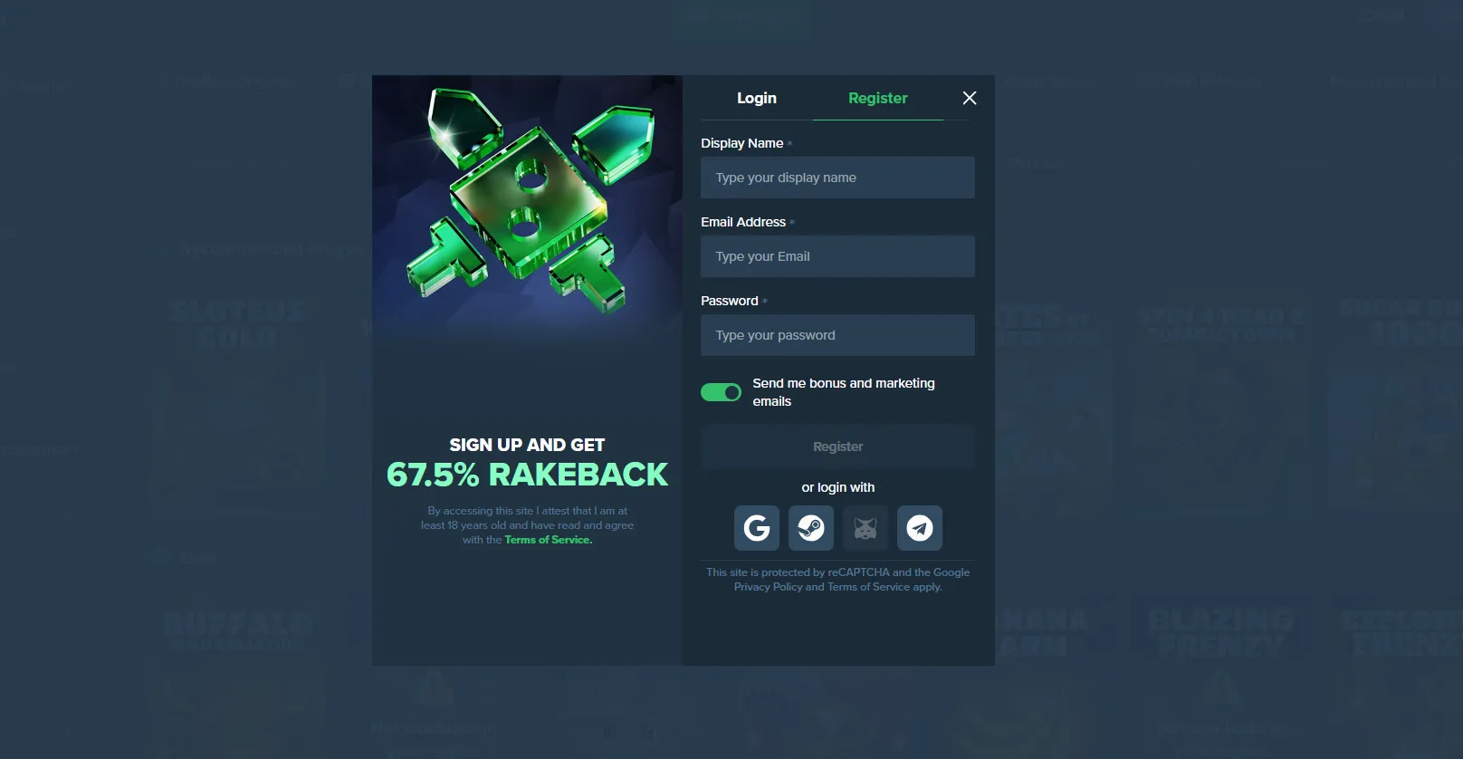 Kliknij „Zarejestruj się” i podaj podstawowe dane lub skorzystaj z rejestracji przez portfel kryptowalutowy. Wybierz bezpieczne hasło.