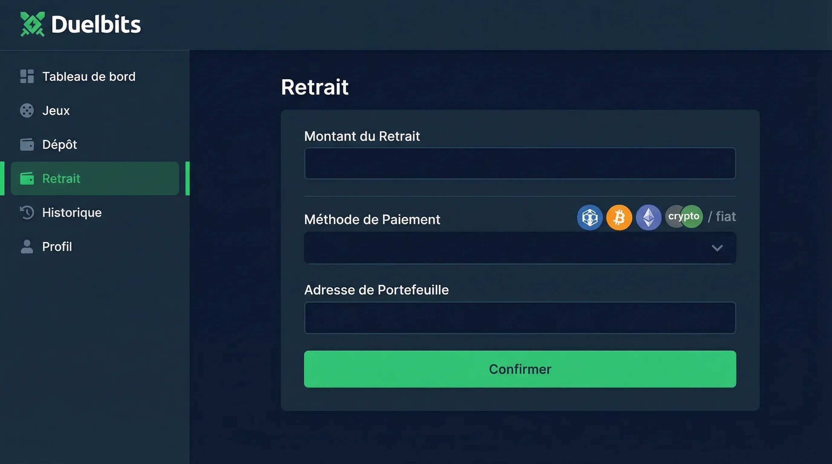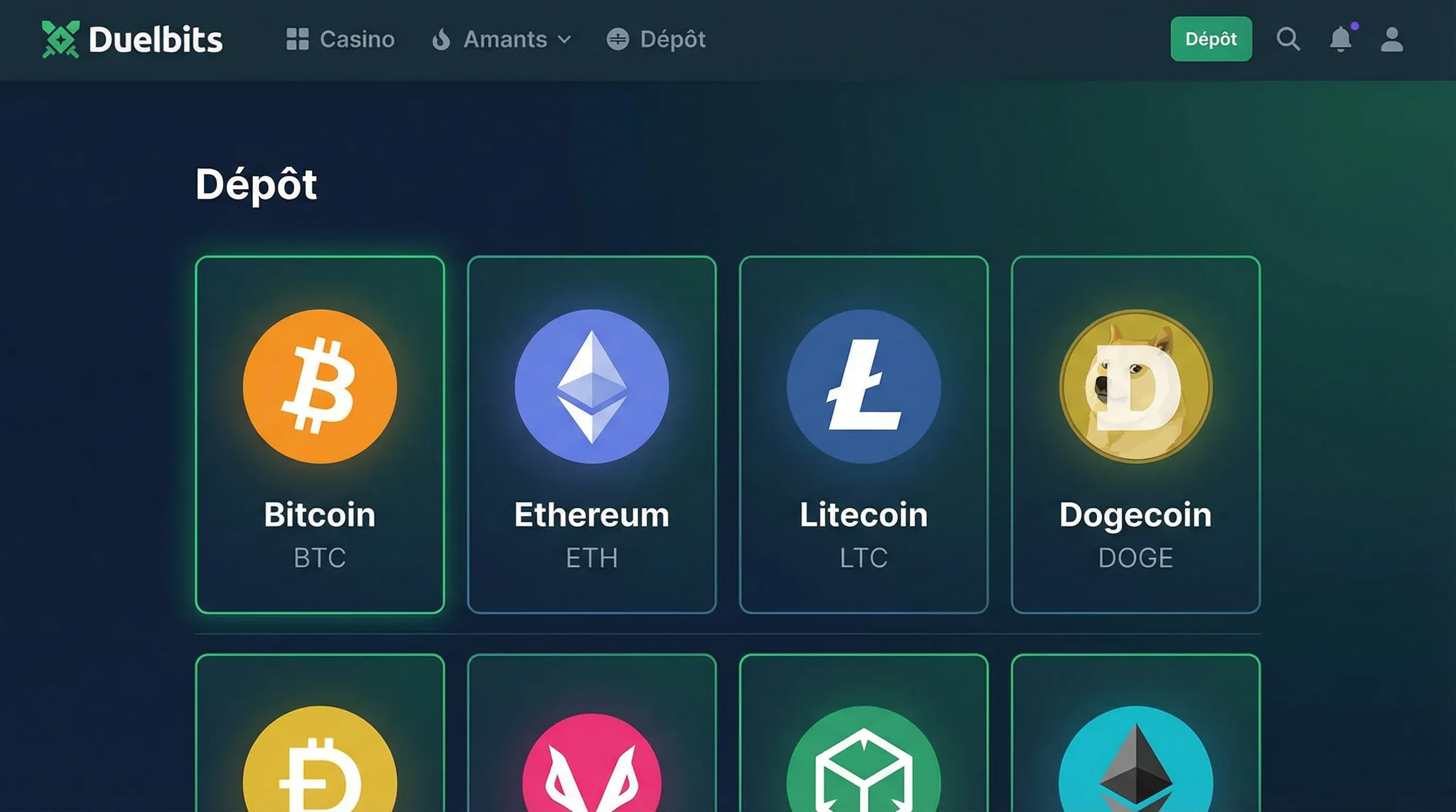 Wpłata środków do krypto kasyna jest procesem prostym i zazwyczaj natychmiastowym. Oto kroki, które należy wykonać, aby dokonać wpłaty na przykładzie platformy Duelbits.
