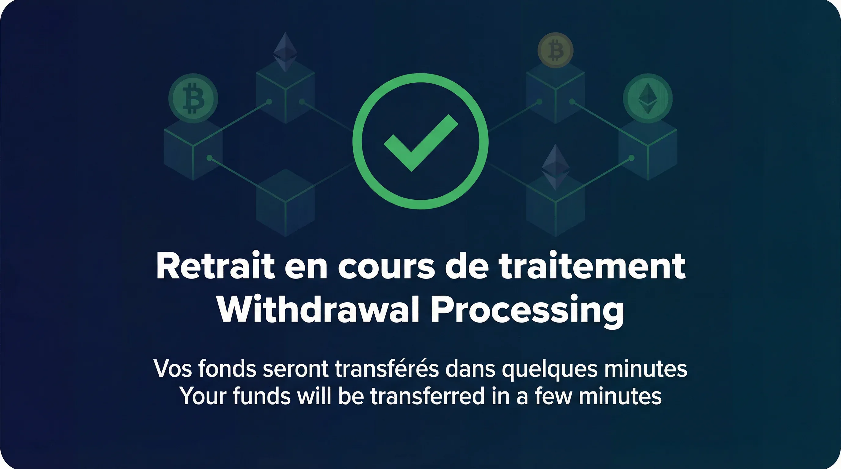 Poczekaj na weryfikację w sieci blockchain; środki pojawią się na koncie po kilku potwierdzeniach.